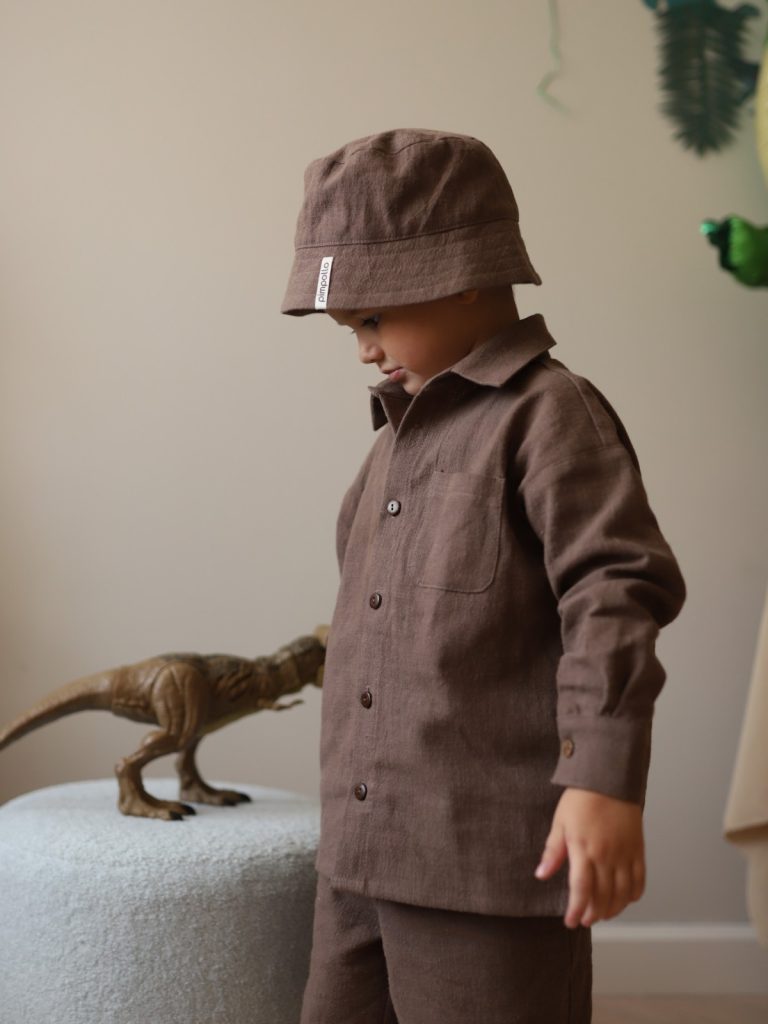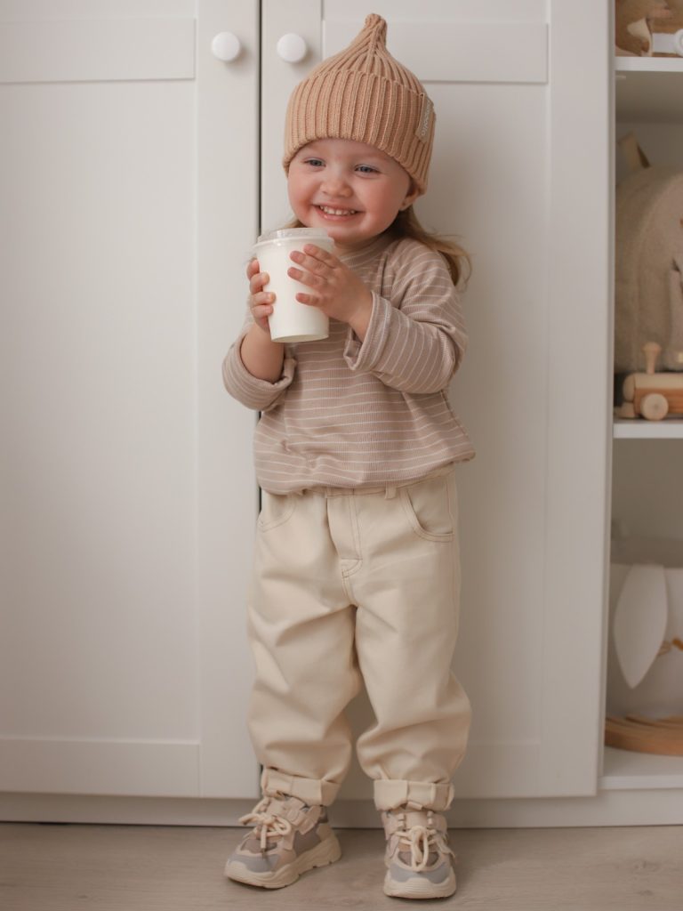 Джоггеры детские из футера с начёсом (тёмно-бежевый)