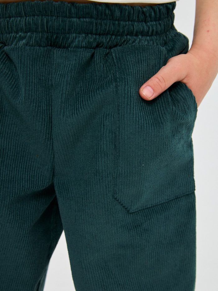 Брюки из хлопкового вельвета с накладными карманами спереди. Внутри пояса имеется шнурок для индивидуальной регулировки по талии. Выполнены из натуральной, прочной, устойчивой к деформациям ткани. Имеет мягкую и бархатистую поверхность. Температурный режим +10 до +20 °С.