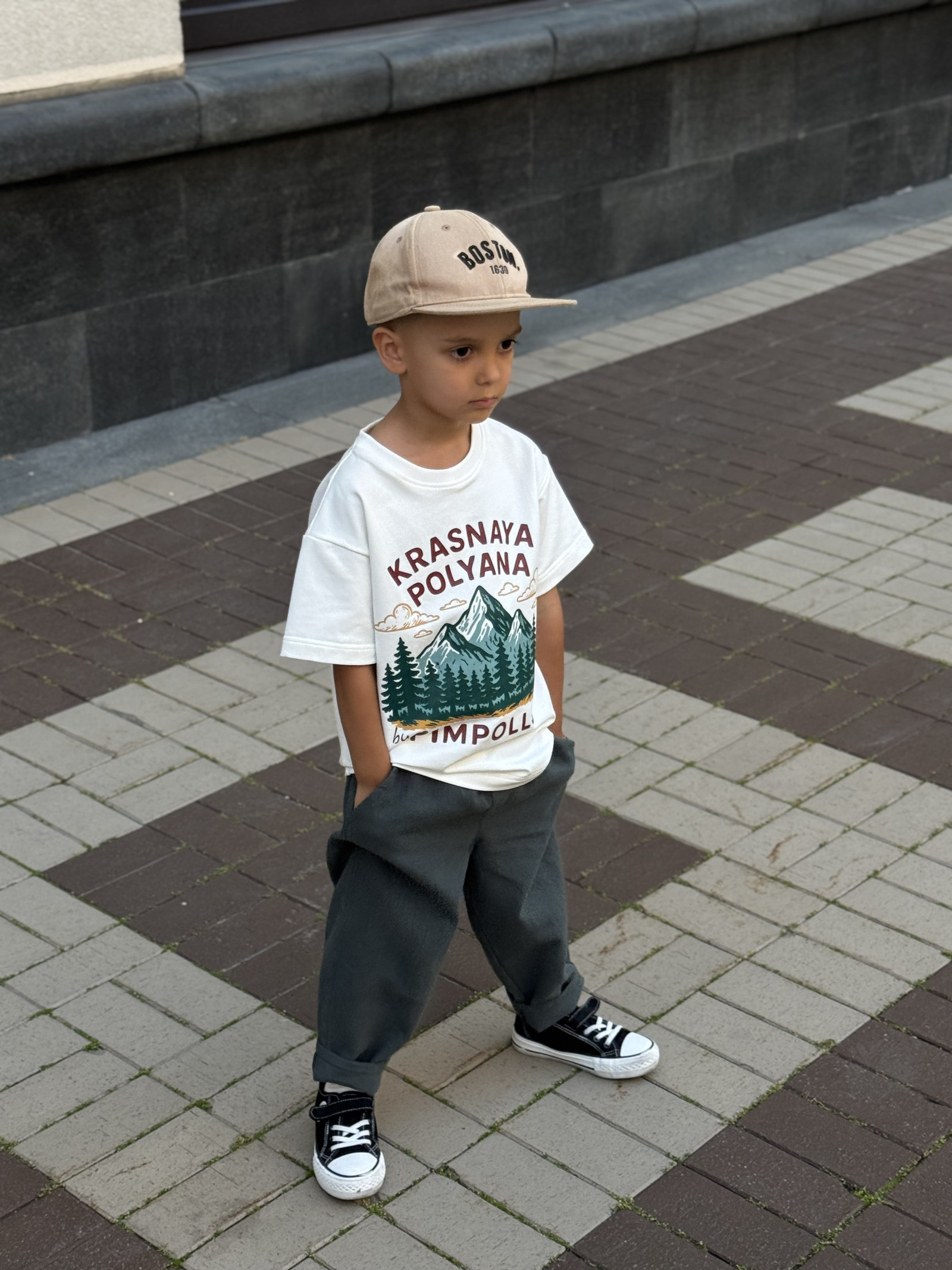 Футболка свободного кроя из плотной трикотажной ткани — турецкого футера. Мягкий и приятный к телу материал точно придётся по вкусу маленькому моднику.
