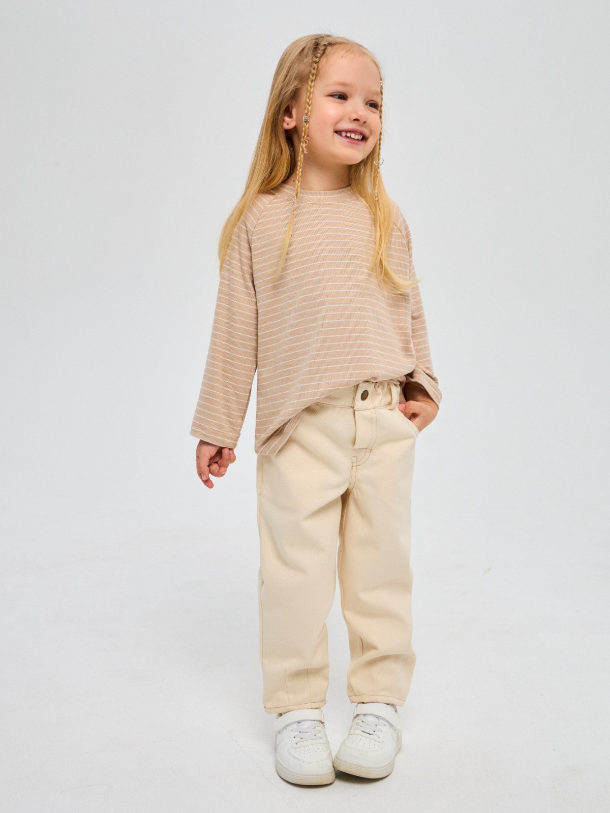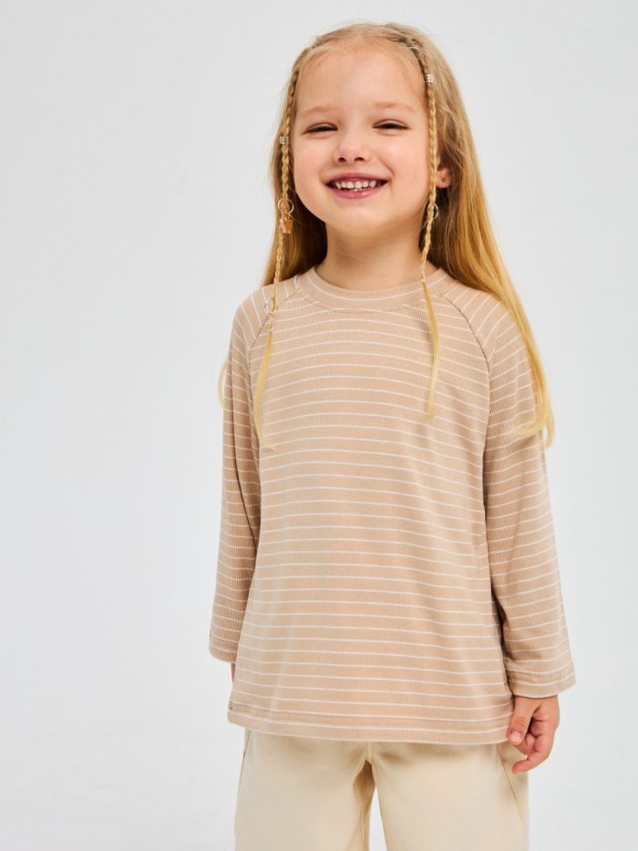 Лонгслив свободного кроя, не сковывает движения маленьких непосед. Трикотаж лапша — невероятно мягкая ткань, комфортная и очень приятная к телу.