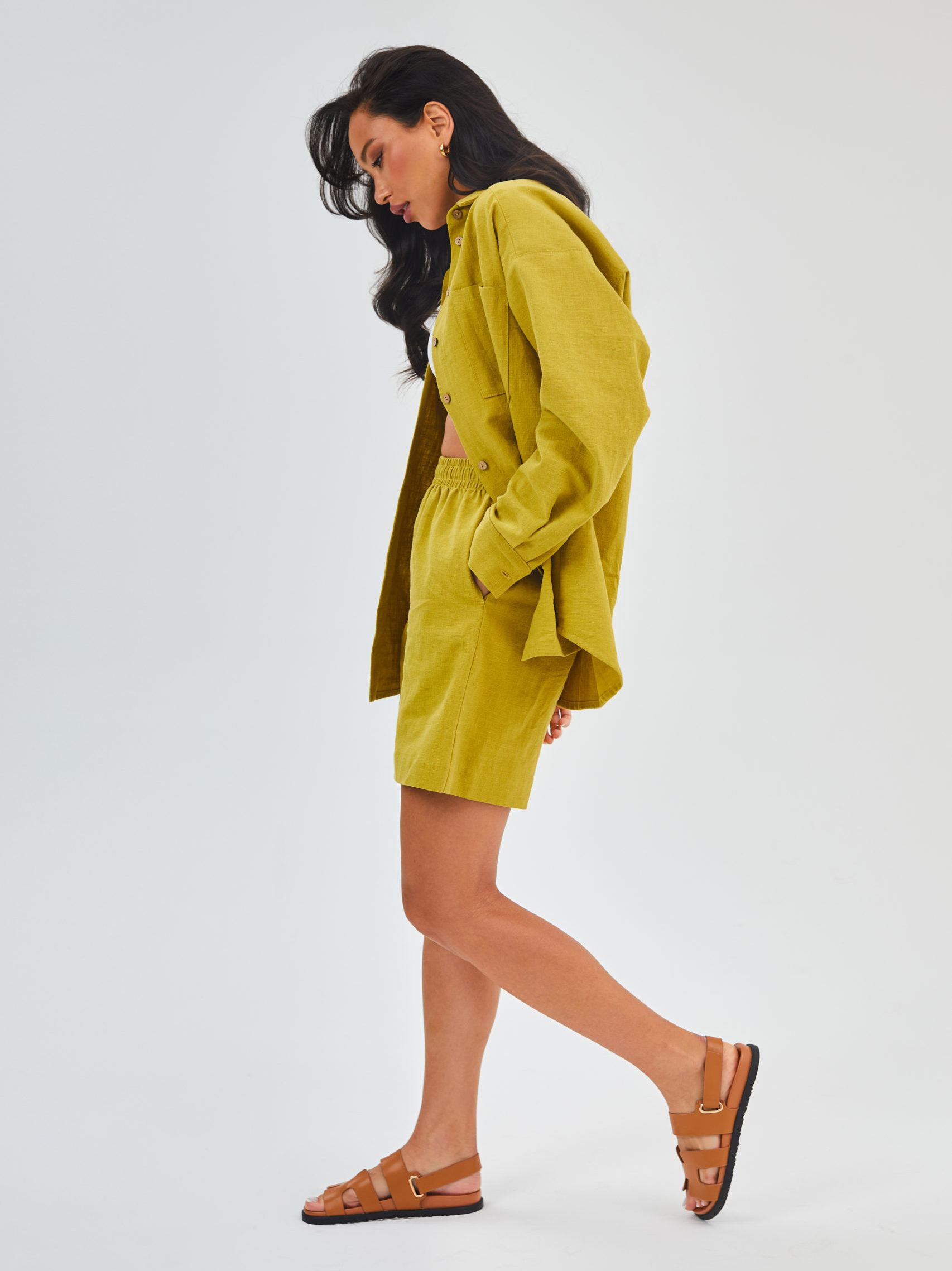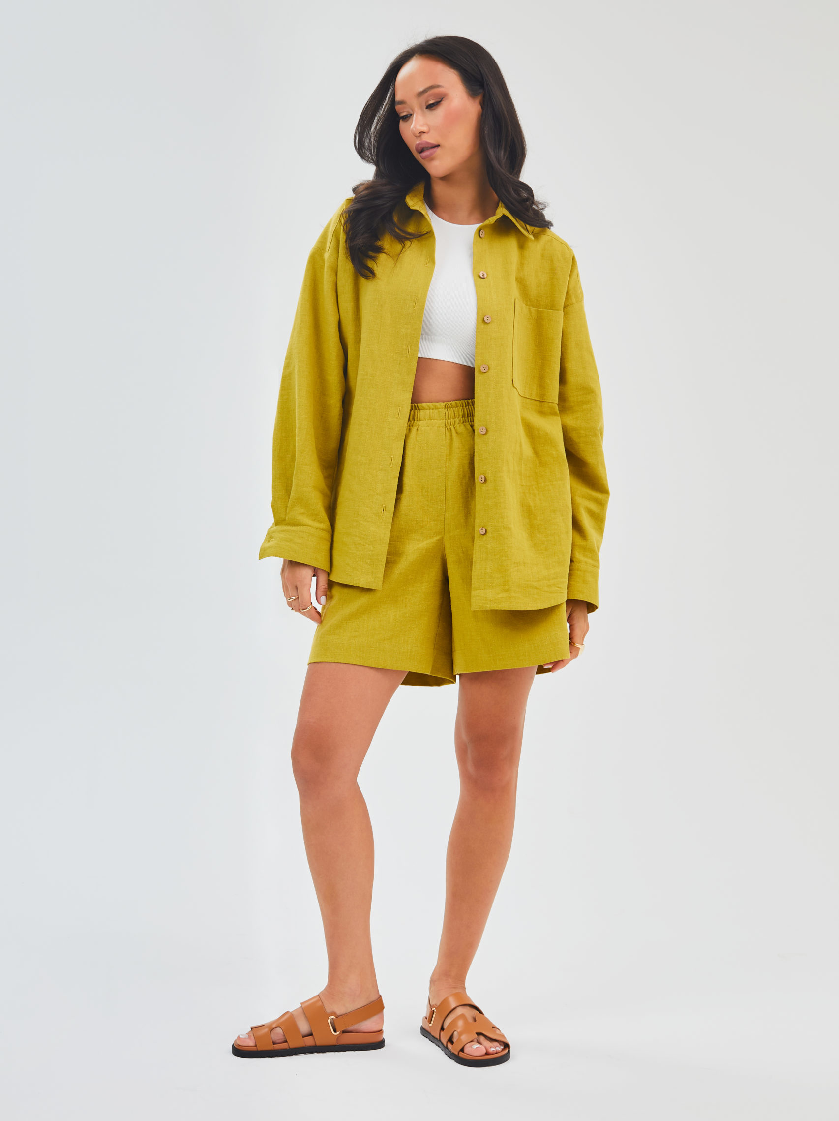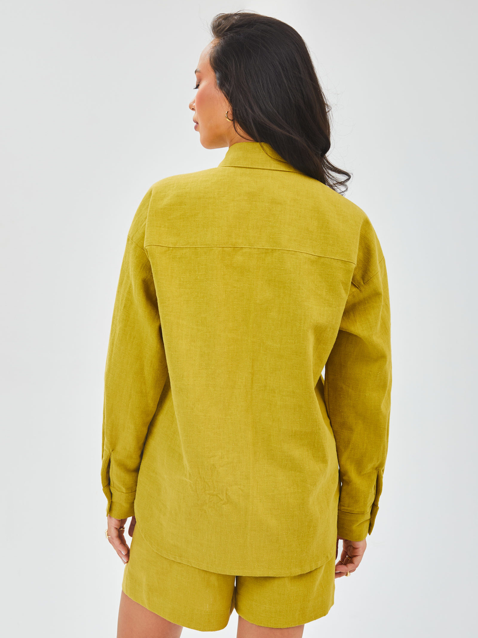 Женская рубашка оверсайз кроя с длинным рукавом. Пуговицы из кокоса. В составе натуральная экологичная ткань. Крапива — уникальная ткань. Летом в такой одежде не жарко, а в холодное время она согревает тело. По структуре похожа на лен, но значительно превосходит его по прочности. За счет своей плотности ткань меньше мнется и при сушке в расправленном виде можно обойтись без глажки.