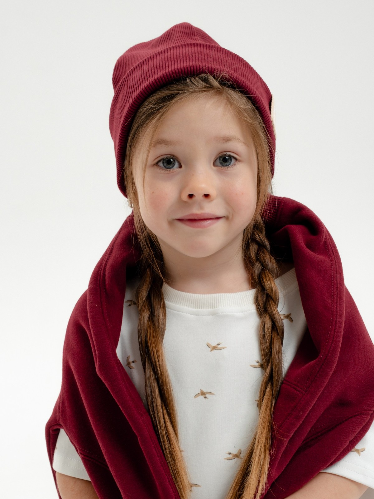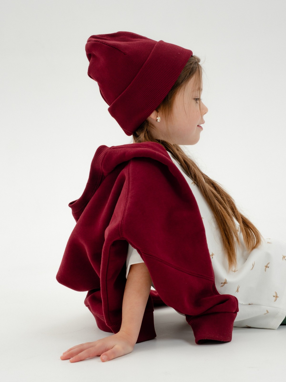 Модель шапки бини устроена таким образом, что её можно носить с отворотом и без. Хорошо держит форму и плотно прилегает к телу, защищая голову от сильного ветра. Ткань кашкорсе, сложенный в два слоя. Натуральный состав ткани обеспечивает хороший воздухообмен.